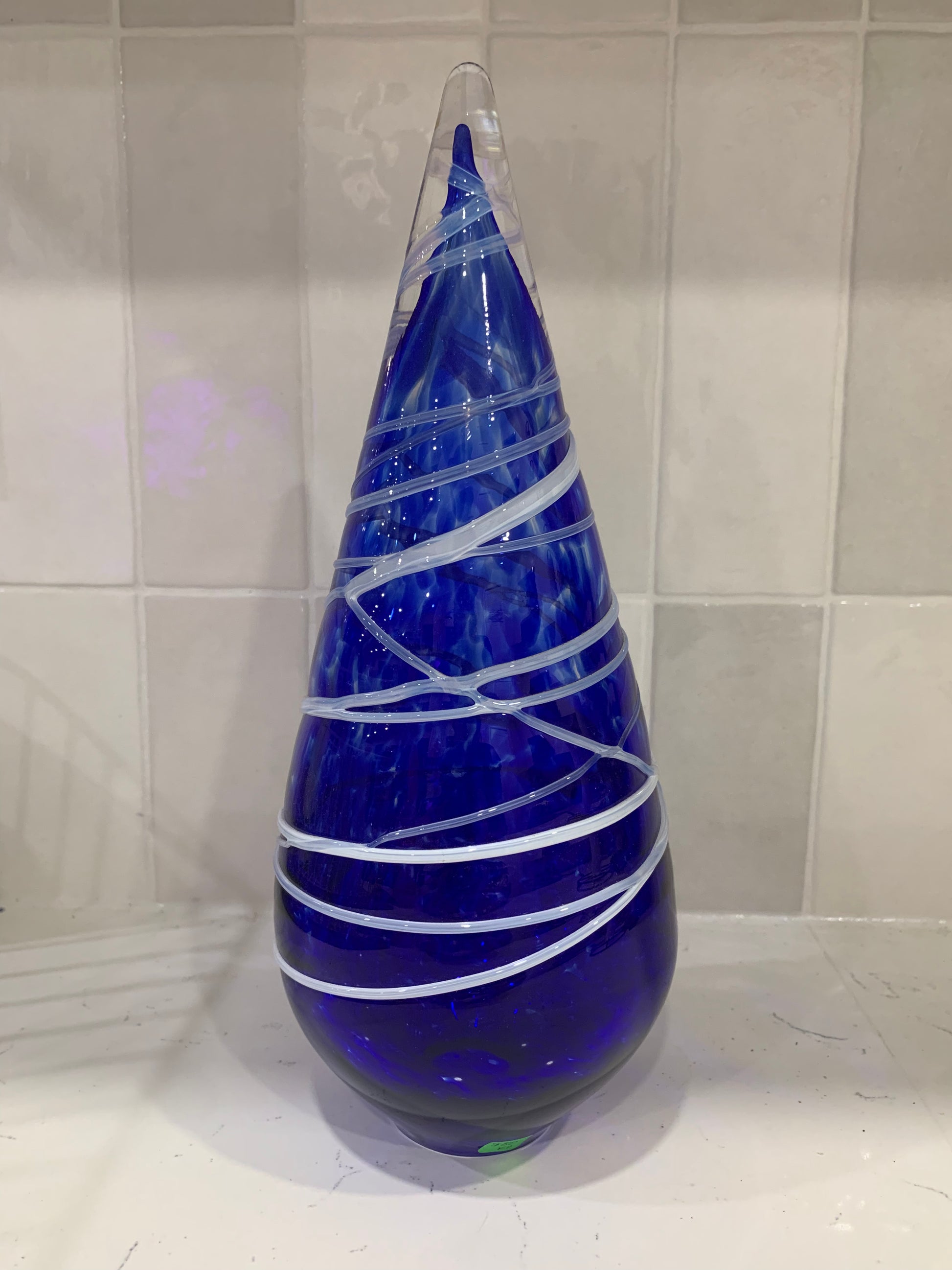 This blown glass Christmas tree offers seasonal decor with an elegant minimalist aesthetic.