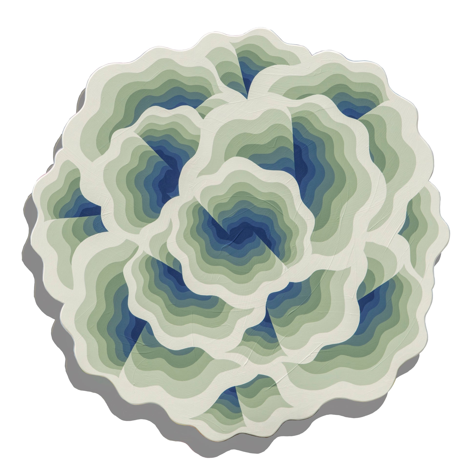 Michael Wayne Hall approaches painting as a meditative and deeply intentional practice. Working entirely by hand, he mixes and remixes each color individually, applying pigment without the use of tape or masking. Wobbles, smudges, and subtle imperfections are left intact—deliberate traces of the artist’s hand that underscore the humanity within each precise composition. His abstract works draw on the flat color fields and hard-edged aesthetics of vintage screenprints, infused with his own luminous gradients that suggest movement, depth, and transition. The result is work that feels both contemporary and timeless—at once calming and kinetic.